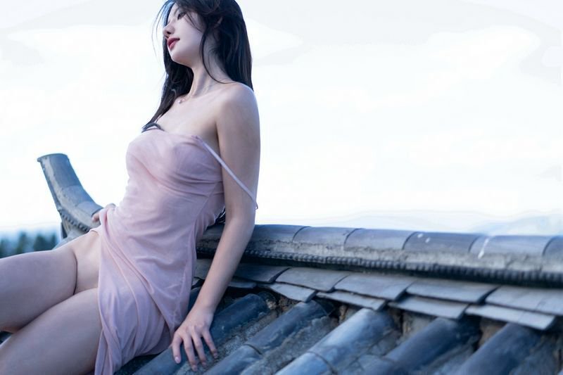阿朱天台屋顶露出性感酥乳窈窕身材